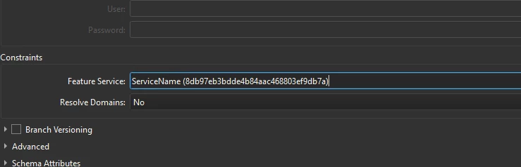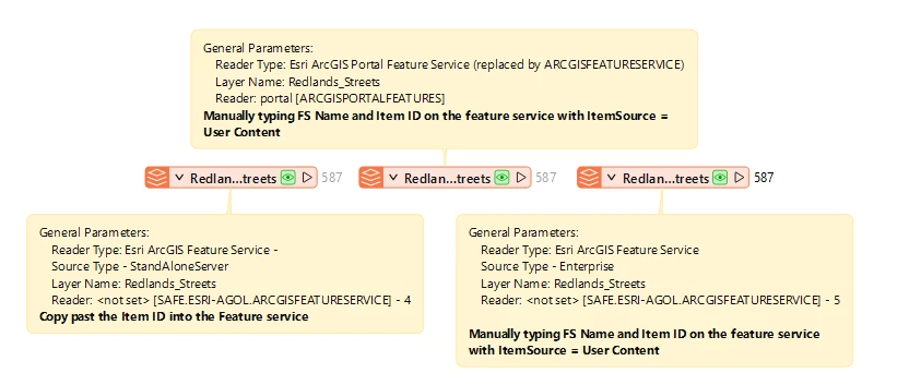 In the Esri ArcGIS Portal Feature Service I can reference a Feature Service in the parameters with the service name and an id