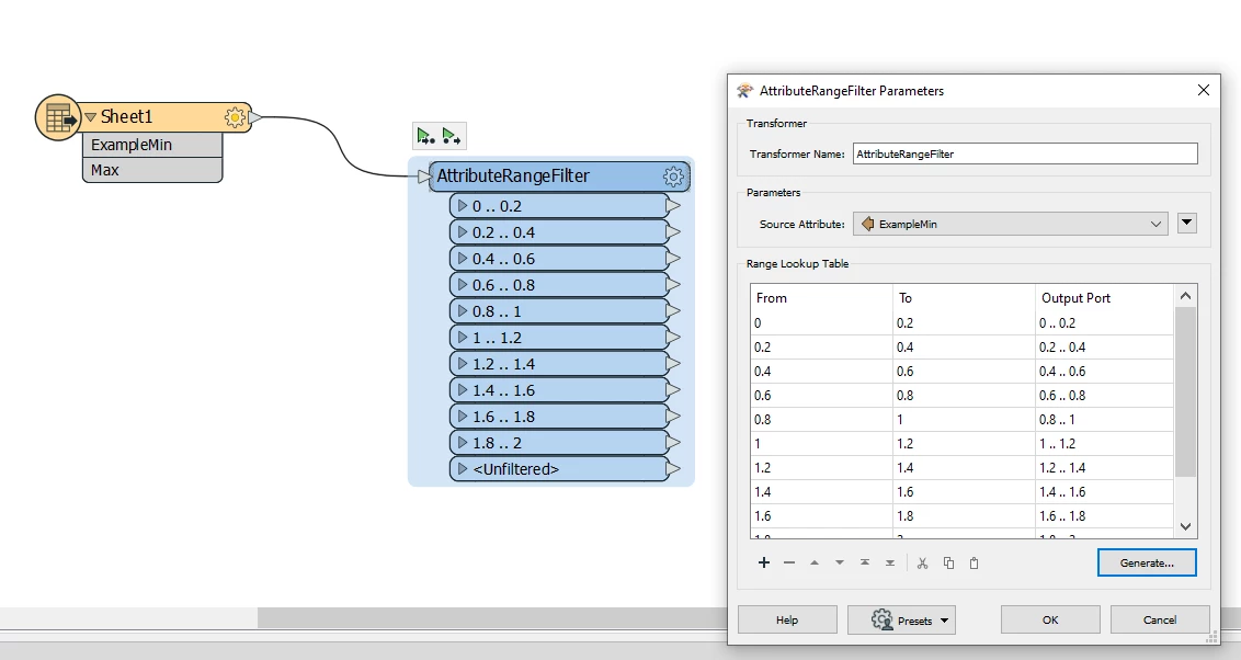 I have a maximum number in an attribute (attached) from this I would like to generate the minimum number, in the attached "ExampleMin" is what I want to achieve, how can I automatically generate this in FME? I have tried using the AttributeRangeMapper transformer, however this requires manual entry of the range.