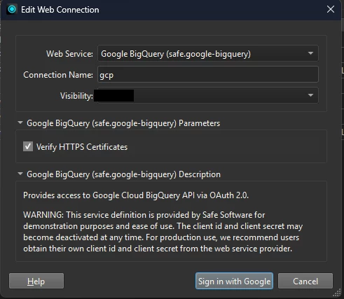 I’m trying to query data from BigQuery using the GoogleBigQueryConnector and get a ‘Failed to get authorization header’ error message when trying to select a project. FME has been given access to my Google account to view and manage data in BigQuery.