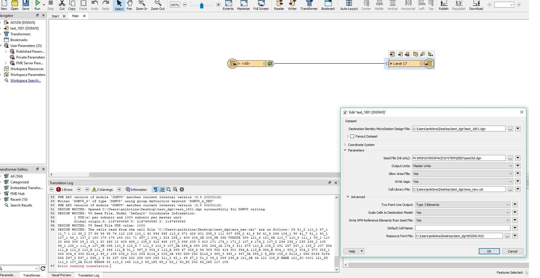 Hello everyone! Maybe someone faced such an issue: I try to write a .dgn file. i want to use my own seed file, cel and rsc. But something went wrong and my workspace doesn't work. i have also tried standard cel file, but there was the same problem.