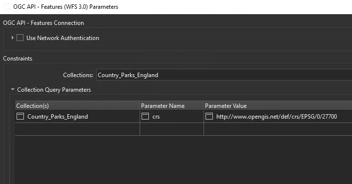 The reader seems to default to WGS84. How can I choose a diffrent CRS in the OGC-API reader?