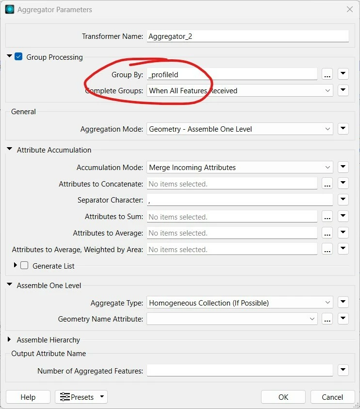 Finally, to allow the FeatureJoiner to operate correctly, I also ungrouped by Prompt.