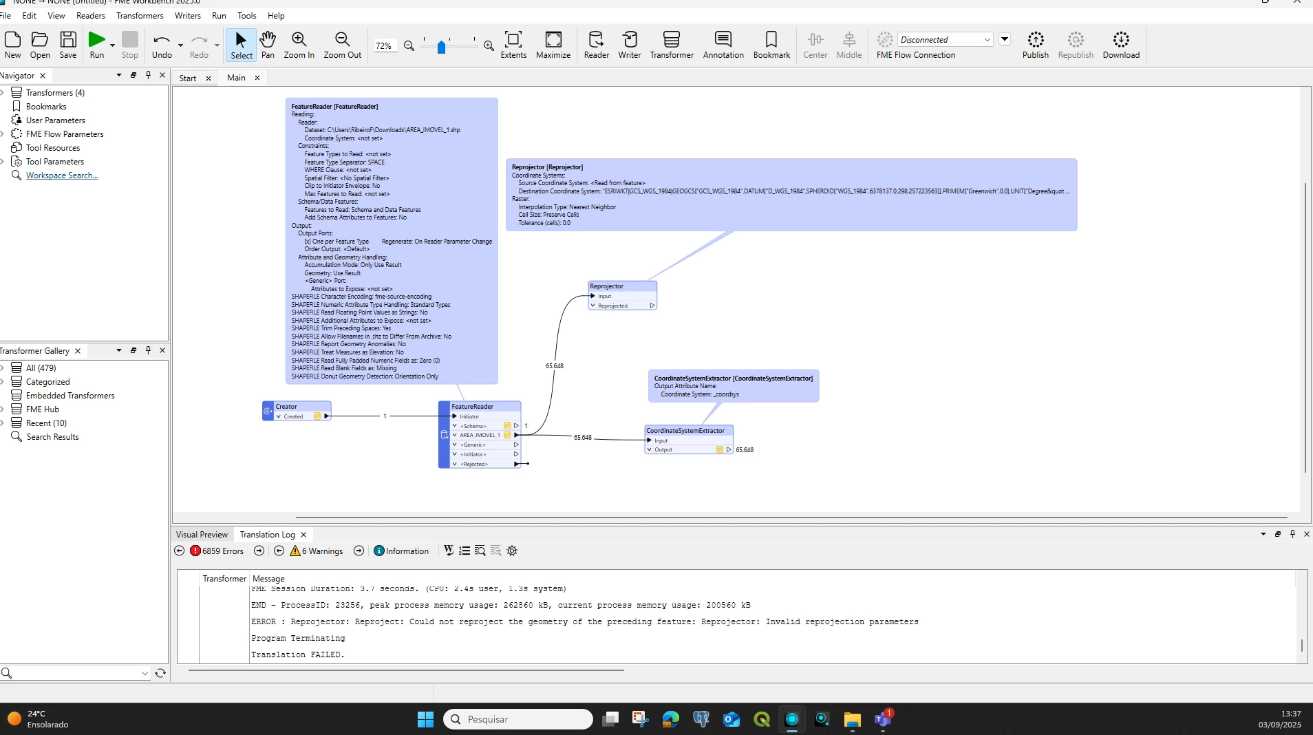 I’m having trouble reprojecting a shapefile. The file is currently in SIRGAS 2000, and I need to convert it to WGS84. However, when I run the reprojection, an error occurs (see attached image).