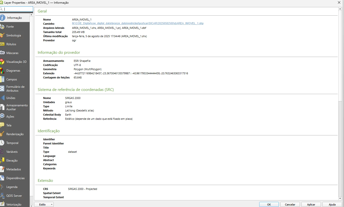 Additionally, I need to extract the current coordinate system of the shapefile. In the table, the field shows up as _FME_0, but it should display SIRGAS 2000.