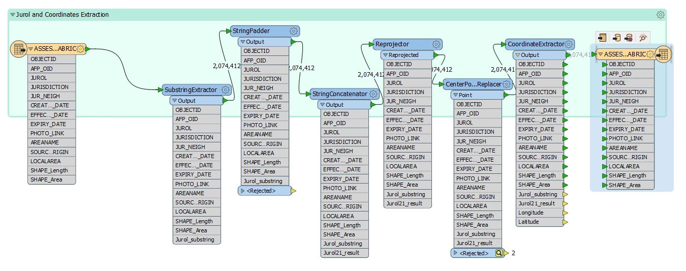 I am dealing with Assessment Fabric parcel Data and I am trying to write it as Microsoft SQL Server Non Spatial File Format. I want to add the Logitech and latitude information for the parcel as well in the file i am writing to but for some reason neither the new string field i have created nor the coordinate information. I am not sure where i am going wrong. Any help will be much appreciated.