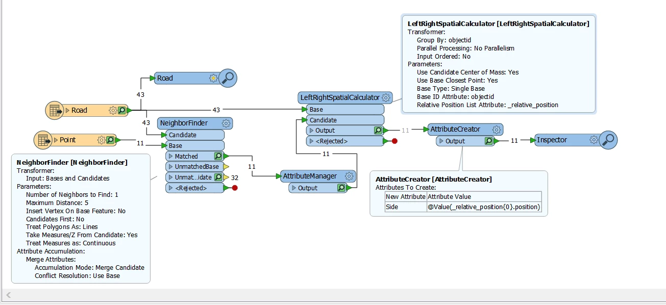 I am using the left-right transformer in order to see the location of the point compared to the road, but it's not giving the expected value, all output is in right but visually are not