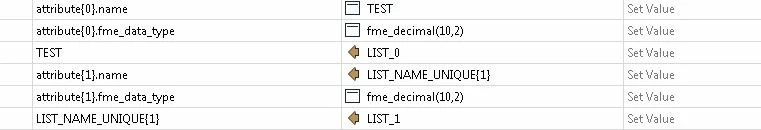 I have the following list attributes set up in an AttributeManager which I am passing to an Excel Spreadsheet Writer set up in Dynamic Schema mode.