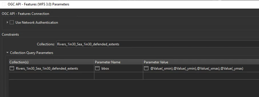 When I add the featurereader without any collection query parameters and save it so it generates the output port. And then I open the parameters and set bbox to the attribute value from the bbox (and also ‘limit’ to 1000). These parameters are not applied and used. Only when I regenerate the output port it applies any HARDCODED values. I cannot feed any dynamic value from a user parameter/attribute.