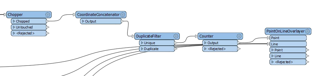 I have a line dataset that I used the transformer chopper to break it into its start and end points.