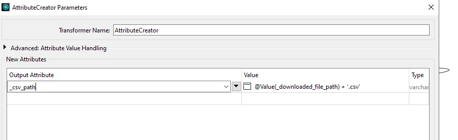 I am taking the _downloaded_file_path from the FTPCaller, and adding “.csv” to it, so that it reads the file. (There is a separate transformer which replaces the file with a file of the same name to add .csv). In the workspace logs, it looks like SystemCaller is interpreting this literally as Filename + ‘.csv’ and that file does not exist.