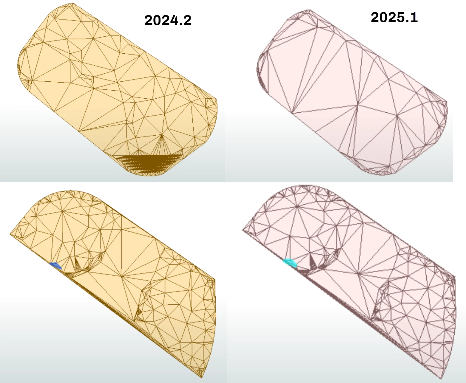 If I use 459 polygons as input and proces them individually by using Group processing, the result of the same polygon is a TIN with 3602 triangles.