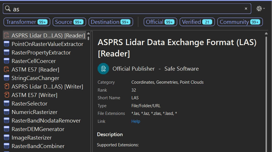 I do also think there's a bit of a bug with the shorthand transformer names. Its picking up ASPRS as its matching the first two characters of the format name