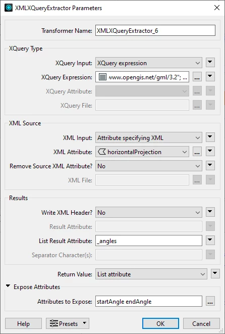 3123 2025-12-1 14:16:57 | fme:set-attribute("endAngle", if ($arc) then string($arc/gml:endAngle) else "")